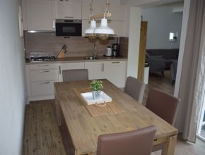Das Wohnzimmer mit offenen Kamin bietet Platz für 6 Personen. Das Badezimmer besteht aus einer ebenerdigen Regendusche sowie einer Toilette, die Gästetoilette befindet sich im Eingangsbereich. Der nichteinsehbarer Gartenbereich befindet sich in Südlage und bietet viel Platz für die Privatsphäre, zum Strand sind es nur circa 300 Meter!